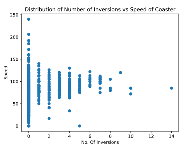 scatter_plot(captain_coaster, 'num_inversions', 'speed')